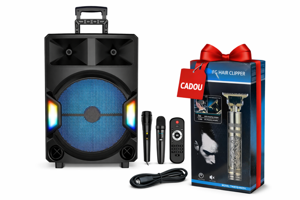 Efectele luminoase LED Light Show creează o atmosferă dinamică, perfectă pentru petreceri, iar funcția radio FM îți oferă acces la posturile preferate fără alte dispozitive. Boxa este dotată cu intrare pentru microfon, fiind ideală pentru karaoke sau prezentări, și include telecomandă pentru control ușor de la distanță.